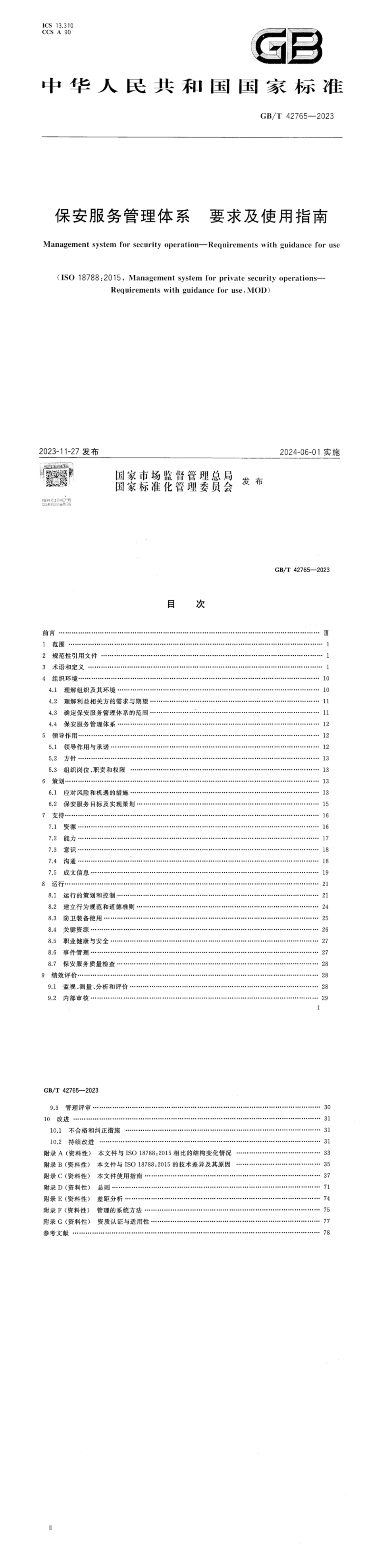 ZZRZ-GZ111-认证依据标准-GB/T 42765-2023 保安服务管理体系 要求及使用指南